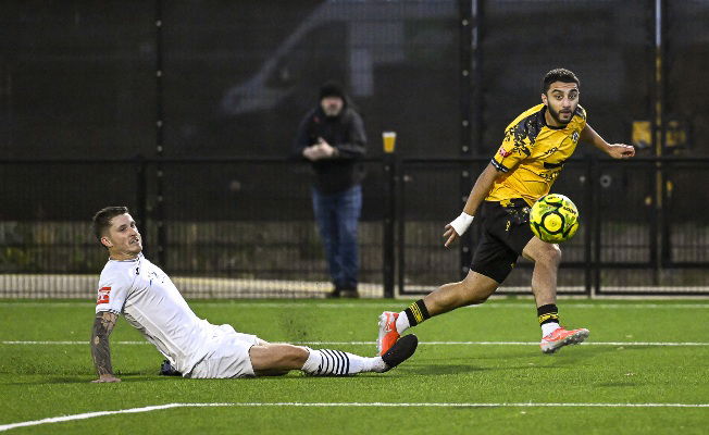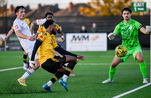 Next, O-Gyamera did Bello down the left flank with 15 to go and the Chichester midfielder was denied by a smart-thinking Binnie in the Wands’ goal who snuffed out the danger.