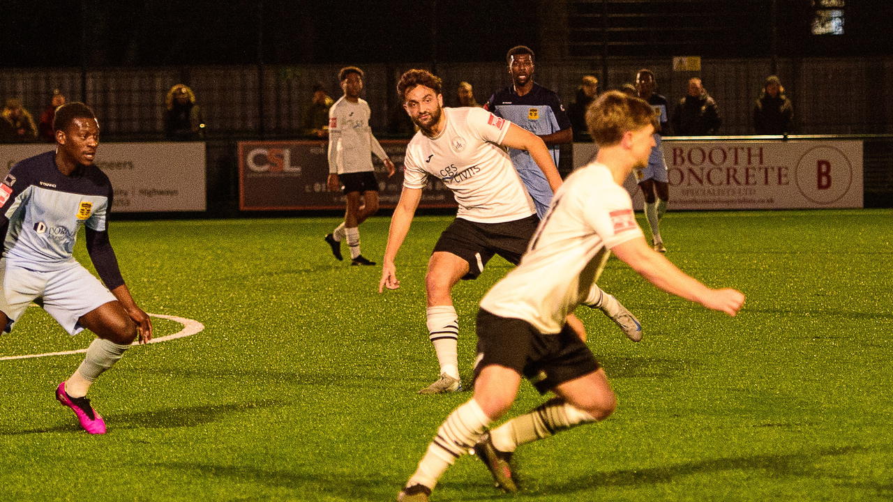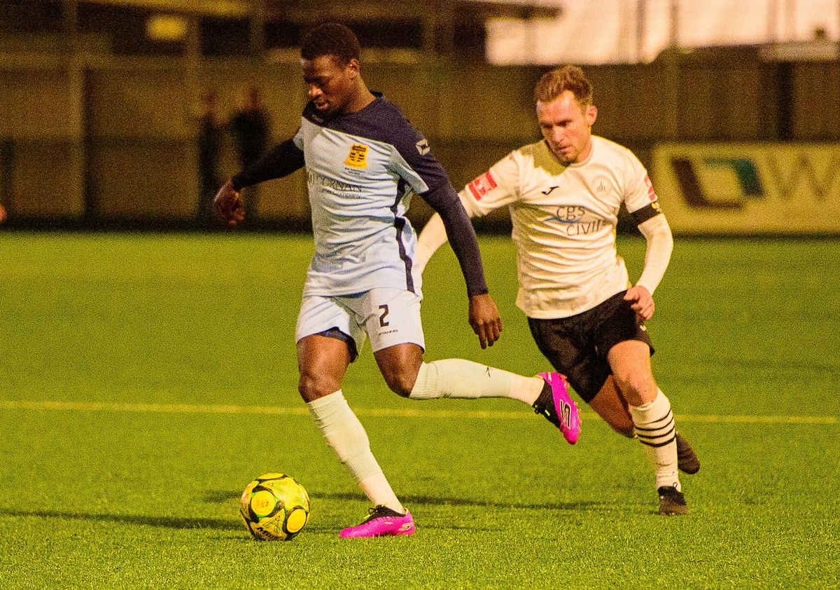 Under the cosh, the hosts conceded a dodgy corner and Jesse Effa struck a shot high and wide 12 minutes in as the Herts side’s intensity didn’t allow Chichester to settle.